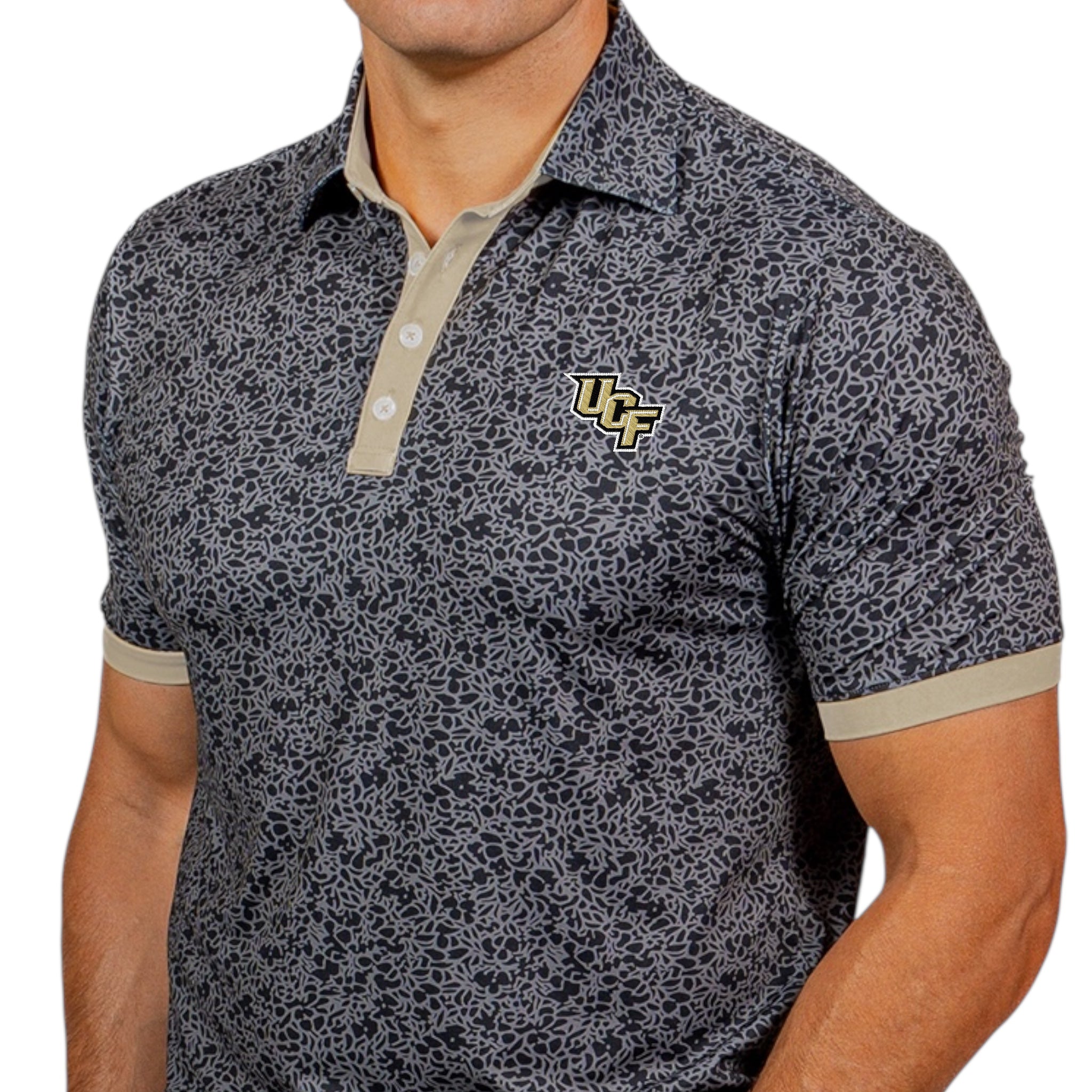 For the most dedicated Knights on the course and beyond. The Fairway Floral four-button performance polo represents UCF with distinction, featuring black and gold in a sharp floral pattern that stands out from the first fairway to the Orlando social scene.