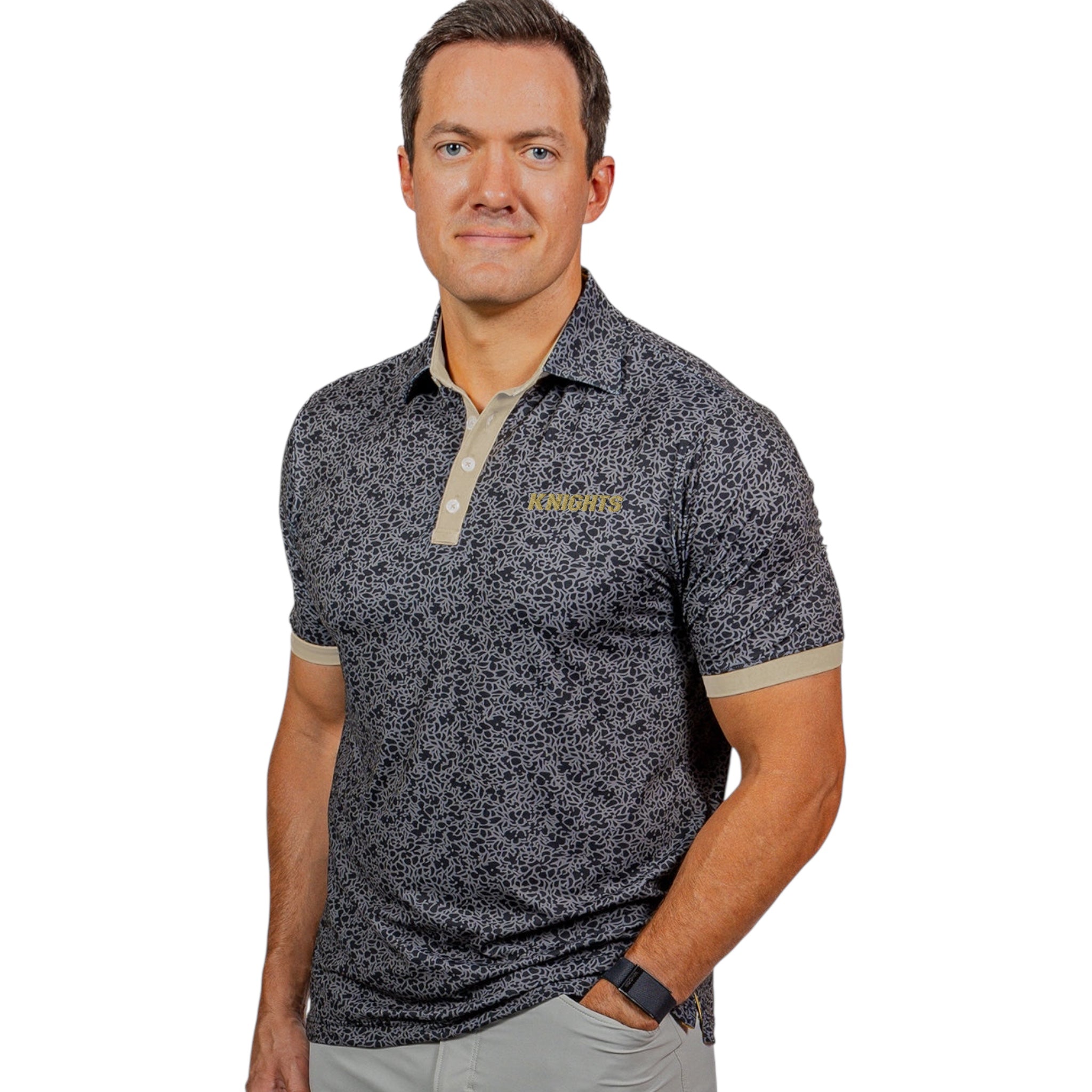For the most dedicated Knights on the course and beyond. The Fairway Floral four-button performance polo represents UCF with distinction, featuring black and gold in a sharp floral pattern that stands out from the first fairway to the Orlando social scene.